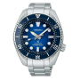 Seiko Prospex Scuba Diver SBDC175 - men's watch produced by Seiko. It has Japanese automatic movement and 6R35 calibre. Stainless steel, diamond shield case of round shape. Case dimensions are 45 mm. in diameter and 13.4 mm. in thickness. The dial of this Seiko watch is blue. Display type: analog. This timepiece has sapphire, antireflection coating glass. Stainless steel band, band color: silver. 200 m. water resistance. The watch is from Seiko Prospex collection. The following features are equipped: date, glowing hands, glowing markers, antimagnetic, screw-down crown.