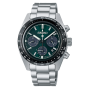 Seiko Prospex Speedtimer SBDL107 - men's watch manufactured by Seiko. It is equipped with Japanese solar quartz movement and V192 calibre. Stainless steel case of round shape. Case dimensions are 39 mm. in diameter and 13.3 mm. in thickness. The dial of this Seiko watch is green. Display type: analog. This timepiece has sapphire, antireflection coating glass. Stainless steel band, band color: silver. 100 m. water resistance. The watch is from Seiko Prospex collection. The following features are equipped: antimagnetic, chronograph, power reserve indicator, date, glowing hands, glowing markers.