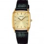 Seiko Quartz SZLJ122 - men's watch made by Seiko. It has Japanese quartz movement. Stainless steel, gold plated case of polygon shape. Case dimensions are 28 mm. in diameter and 6 mm. in thickness. The dial of this Seiko watch is gold. Display type: analog. This timepiece has hardlex glass. Leather band, band color: black. 50 m. water resistance. The watch is from Seiko Quartz collection.