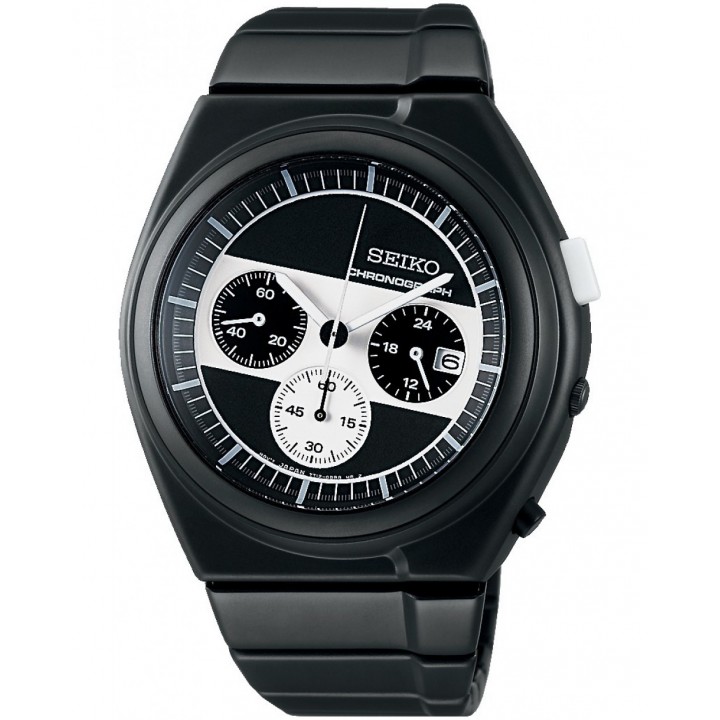 Seiko Selection GIUGIARO DESIGN Limited Edition White Mountaineering Exclusive SCED065 - men's watch produced by Seiko. It is equipped with Japanese quartz movement and 7T12 calibre. Stainless steel, hard coating case of round shape. Case dimensions are 43 mm. in diameter and 11.4 mm. in thickness. The dial of this Seiko watch is black, white. Display type: analog. This timepiece has hardlex glass. Stainless steel, hard coating band, band color: black. 100 m. water resistance. The watch is from Seiko Selection collection. The following features are equipped: date, chronograph, antimagnetic, limited edition.