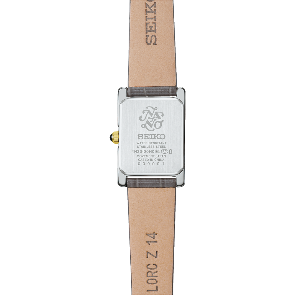 Seiko Selection Ladies Battery-Powered Quartz nano・universe Special Edition SSEH025 - ladies watch produced by Seiko. It is equipped with Japanese quartz movement and 4N30 calibre. Stainless steel case of rectangle shape. Case dimensions are 18.9 mm. in diameter and 4.9 mm. in thickness. The dial of this Seiko watch is mother of pearl. Display type: analog. This timepiece has hardlex glass. Cowhide leather band, band color: brown. 30 m. water resistance. The watch is from Seiko Selection collection. The following features are equipped: antimagnetic.