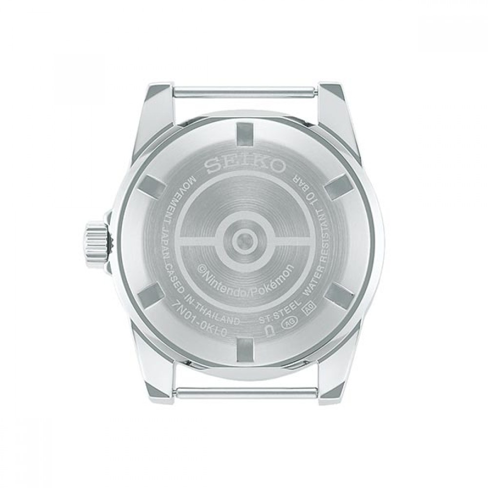 Seiko Selection Pokemon Special Model SCXP175 - unisex watch made by Seiko. It has Japanese quartz movement and 7N01 calibre. Stainless steel case of round shape. Case dimensions are 35 mm. in diameter and 9.72 mm. in thickness. The dial of this Seiko watch is yellow. Display type: analog. This timepiece has hardlex glass. Leather, fabric band, band color: black, green. 100 m. water resistance. The watch is from Seiko Selection collection. The following features are equipped: antimagnetic.