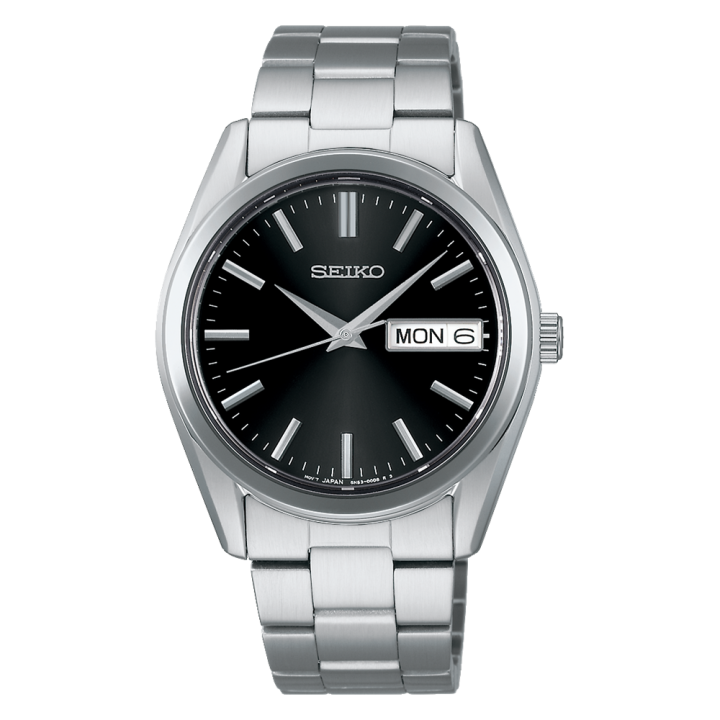 Seiko Selection S Series SBTH011 - men's watch manufactured by Seiko. It is equipped with Japanese quartz movement and 6N53 calibre. Stainless steel case of round shape. Case dimensions are 37.4 mm. in diameter and 8.4 mm. in thickness. The dial of this Seiko watch is black. Display type: analog. This timepiece has sapphire, antireflection coating glass. Stainless steel band, band color: silver. 100 m. water resistance. The watch is from Seiko Selection collection. The following features are equipped: date, day, antimagnetic.