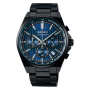 Seiko Selection S-series SBTR035 - men's watch manufactured by Seiko. It has Japanese quartz movement and 8T63 calibre. Stainless steel, hard coating case of round shape. Case dimensions are 41 mm. in diameter and 12.3 mm. in thickness. The dial of this Seiko watch is blue. Display type: analog. This timepiece has hardlex glass. Stainless steel, hard coating band, band color: black. 100 m. water resistance. The watch is from Seiko Selection collection. The following features are equipped: glowing hands, glowing markers, antimagnetic, date, chronograph.