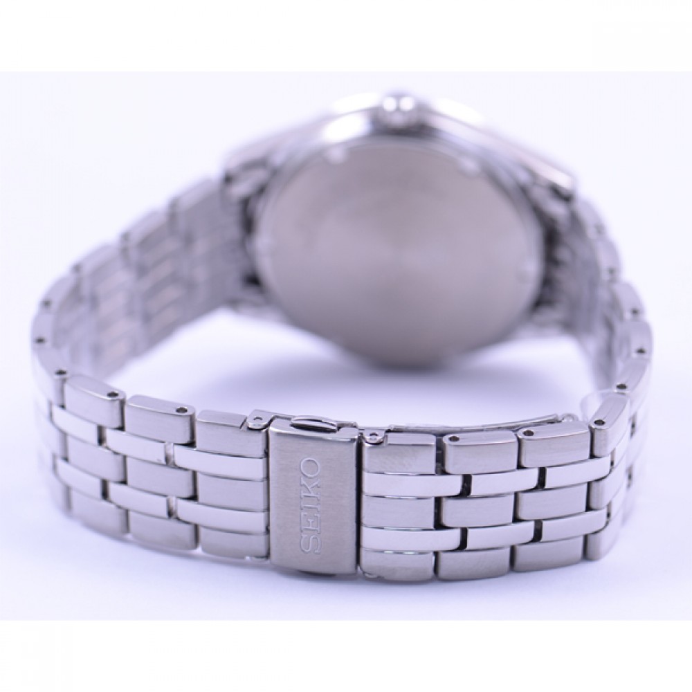 Seiko Selection SBPX079 - men's watch manufactured by Seiko. It has Japanese solar quartz movement and V158 calibre. Stainless steel case of round shape. Case dimensions are 37.4 mm. in diameter and 9.2 mm. in thickness. The dial of this Seiko watch is white. Display type: analog. This timepiece has sapphire glass. Stainless steel band, band color: silver. 30 m. water resistance. The watch is from Seiko Selection collection. The following features are equipped: date, day.