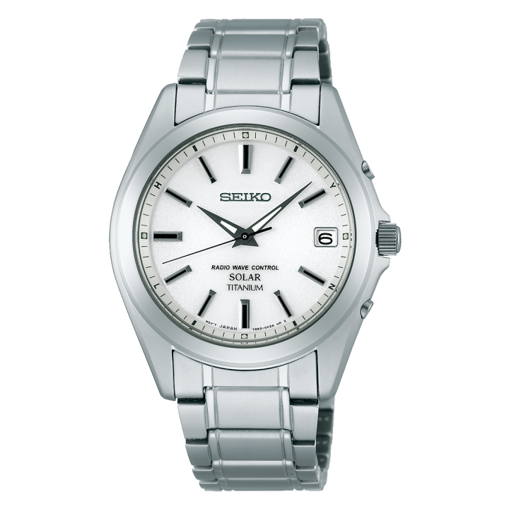 Seiko Selection SBTM213 - men's watch manufactured by Seiko. It is equipped with Japanese solar quartz movement and 7B52 calibre. Titanium, hard coating case of round shape. Case dimensions are 37.8 mm. in diameter and 8.8 mm. in thickness. The dial of this Seiko watch is white. Display type: analog. This timepiece has sapphire, super clear coating glass. Titanium, hard coating band, band color: silver. 100 m. water resistance. The watch is from Seiko Selection collection. The following features are equipped: date, radio controlled, screw-down crown, perpetual calendar, glowing hands, glowing markers.