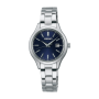 Seiko Selection Solar Limited Model STPX095 - ladies watch made by Seiko. It is equipped with Japanese solar quartz movement and V137 calibre. Stainless steel case of round shape. Case dimensions are 27.8 mm. in diameter and 7.3 mm. in thickness. The dial of this Seiko watch is navy. Display type: analog. This timepiece has sapphire glass. Stainless steel band, band color: silver. 100 m. water resistance. The watch is from Seiko Selection collection. The following features are equipped: antimagnetic, date.