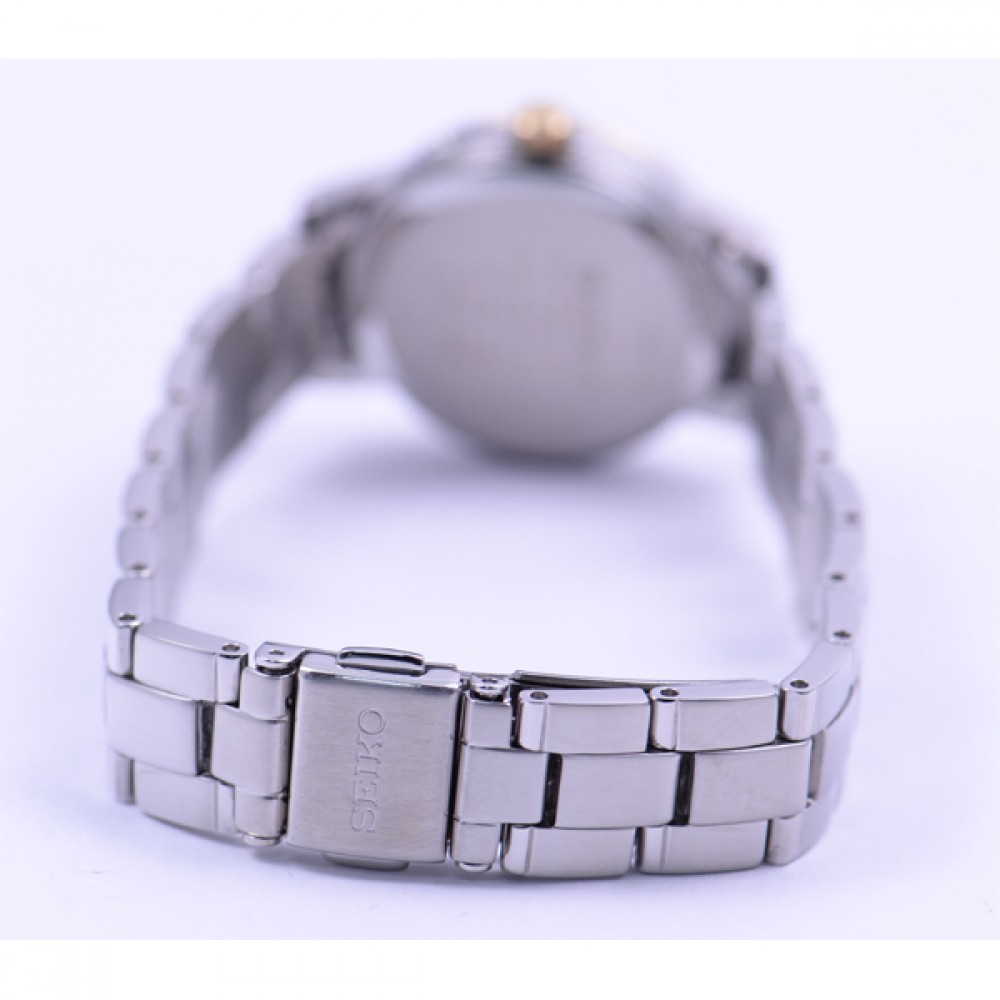 Seiko Selection SSDY020 - ladies watch manufactured by Seiko. It has Japanese solar quartz movement and 1B21 calibre. Stainless steel, gold plated case of round shape. Case dimensions are 26.5 mm. in diameter and 8.1 mm. in thickness. The dial of this Seiko watch is gold. Display type: analog. This timepiece has sapphire glass. Stainless steel band, band color: silver. 100 m. water resistance. The watch is from Seiko Selection collection. The following features are equipped: radio controlled, antimagnetic.