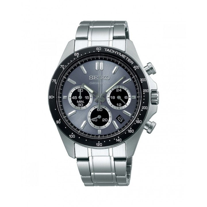 Seiko Spirit SBTR027 - men's watch manufactured by Seiko. It is equipped with Japanese quartz movement and 8T63 calibre. Stainless steel case of round shape. Case dimensions are 39.8 mm. in diameter and 11.6 mm. in thickness. The dial of this Seiko watch is gray. Display type: analog. This timepiece has hardlex glass. Stainless steel band, band color: silver. 100 m. water resistance. The watch is from Spirit collection. The following features are equipped: date, chronograph, glowing hands.