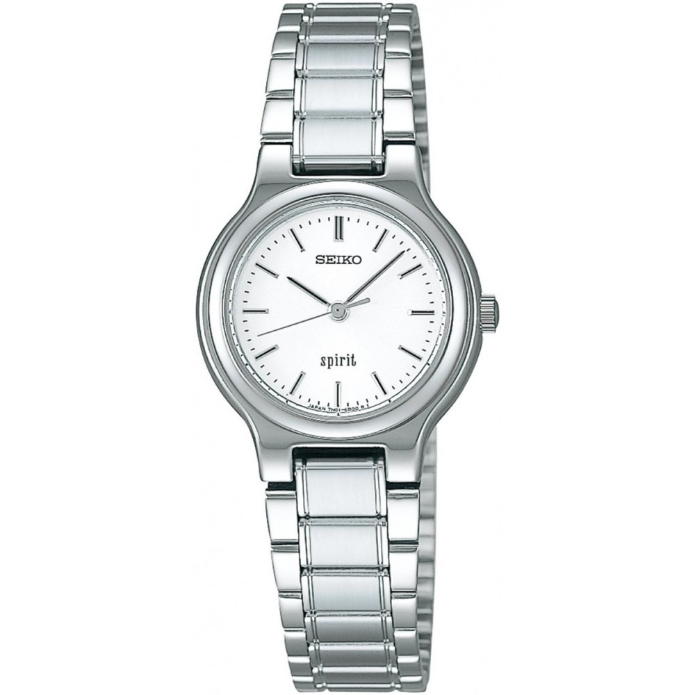 Seiko Spirit SSDN003 - ladies watch manufactured by Seiko. It has Japanese quartz movement and 7N01 calibre. Stainless steel case of round shape. Case dimensions are 25.4 mm. in diameter and 6.5 mm. in thickness. The dial of this Seiko watch is white. Display type: analog. This timepiece has hardlex glass. Stainless steel band, band color: silver. 50 m. water resistance. The watch is from Spirit collection. The following features are equipped: antimagnetic.