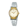Seiko SQWK024 - ladies watch produced by Seiko. It is equipped with Japanese quartz movement and 4J27 calibre. Stainless steel, gold plated case of round shape. Case dimensions are 25.7 mm. in diameter and 8.9 mm. in thickness. The dial of this Seiko watch is beige. Display type: analog. This timepiece has polymer glass. Stainless steel band, band color: silver. 30 m. water resistance. The watch is from Seiko Quartz collection.