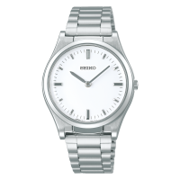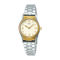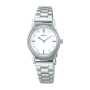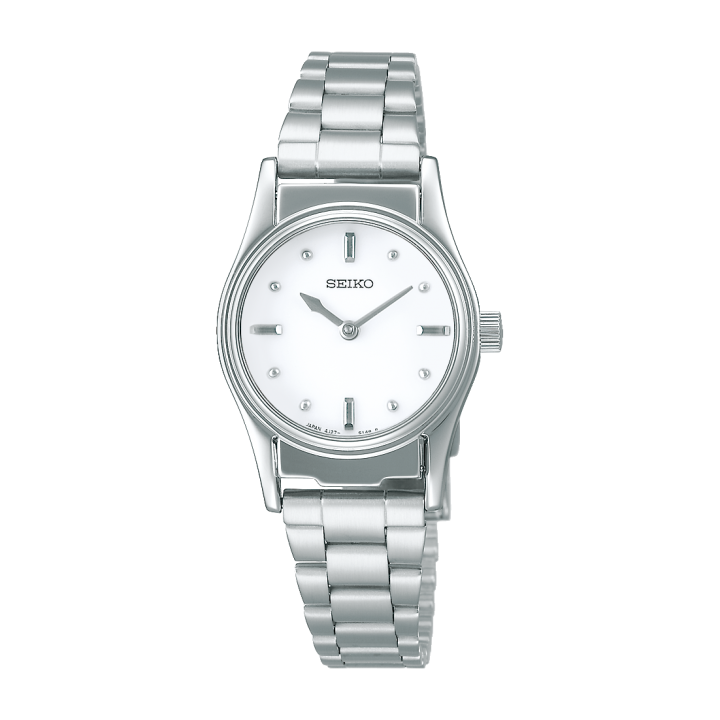 Seiko Tactile Watch SQWK029 - ladies watch manufactured by Seiko. It has Japanese quartz movement and 4J27 calibre. Stainless steel case of round shape. Case dimensions are 25.7 mm. in diameter and 9.1 mm. in thickness. The dial of this Seiko watch is white. Display type: analog. This timepiece has polymer glass. Stainless steel band, band color: silver. m. water resistance. The watch is from Tactile collection.