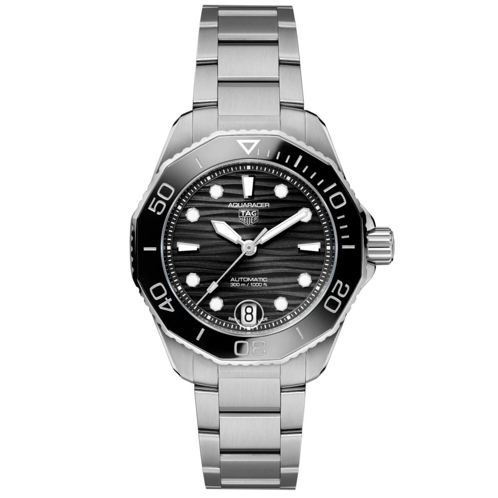 Tag Heuer Aquaracer Professional 300 Date WBP231D.BA0626 - ladies watch manufactured by Tag Heuer. It has Japanese automatic movement and Calibre 5 calibre. Stainless steel, ceramic case of round shape. Case dimensions are 36 mm. in diameter. The dial of this Tag Heuer watch is black. Display type: analog. This timepiece has sapphire, antireflection coating glass. Stainless steel band, band color: silver. 300 m. water resistance. The watch is from Aquaracer collection. The following features are equipped: date, glowing hands, glowing markers.