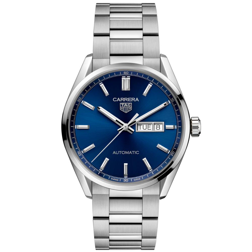 Tag Heuer Carrera Day Date WBN2012.BA0640 - men's watch manufactured by Tag Heuer. It has Japanese automatic movement and Calibre 5 calibre. Stainless steel case of round shape. Case dimensions are 41 mm. in diameter and 12.37 mm. in thickness. The dial of this Tag Heuer watch is blue. Display type: analog. This timepiece has sapphire, antireflection coating glass. Stainless steel band, band color: silver. 100 m. water resistance. The watch is from Carrera collection. The following features are equipped: date, glowing hands, glowing markers, day.